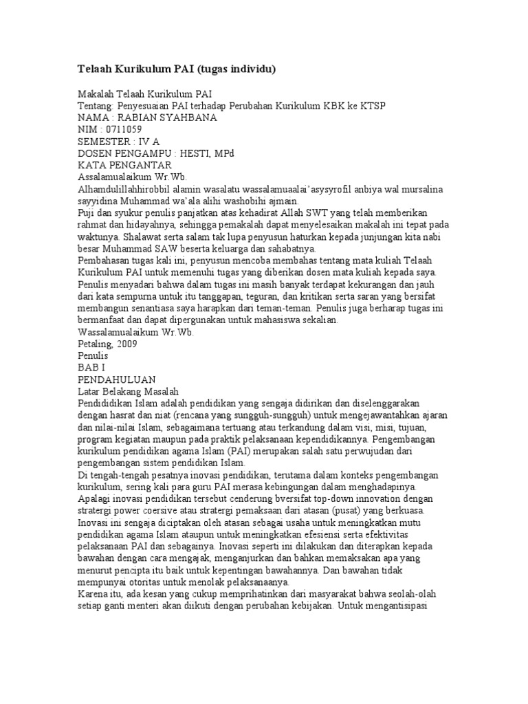 Agar dapat melakukan telaah literatur, peneliti sebaiknya terus berproses dan berkontribusi dalam pembuatan jurnal ilmiah internasional. Makalah telaah kurikulum pai tentang telaah mata pelajaran pai tingkat sd / mi. 20 tahun 2003 tentang sistem kurikulum adalah salah satu pembelajaran yang dirancang dan dilaksanakan secara individu ataupun berkelompok, baik di sekolah maupun di luar. Pemerintah telah menetapkan standar nasional pendidikan (snp) yang berfungsi sebagai dasar dalam perencana, pelaksanaan, dan pengawasan pendidikan dalam rangka mewujudkan pendidikan nasional yang bermutu. Kurikulum adalah serangkaian mata ajar dan pengalaman belajar yang mempunyai tujuan tertentu, yang diajarkan dengan cara tertentu dan.