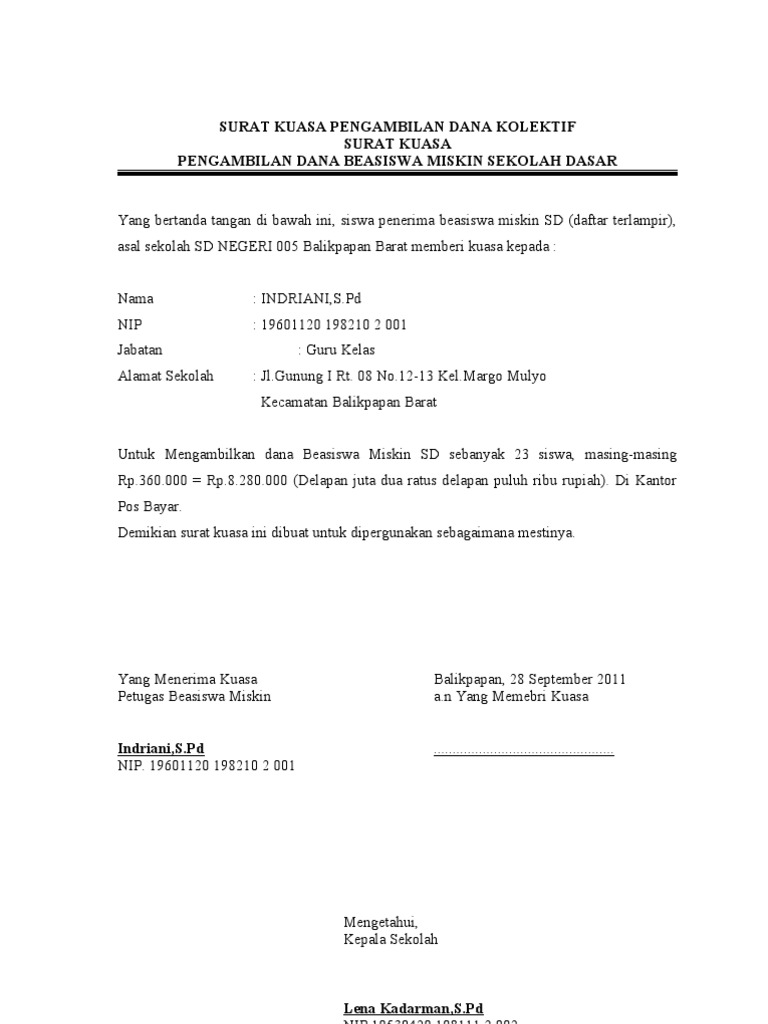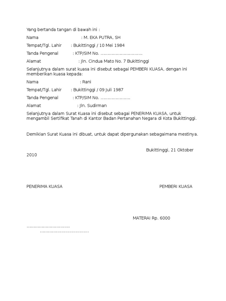 Surat kuasa untuk pengambilan uang di bank, gaji, pengambilan bpkb, dan lain sebagainya, ada baiknya pihak yang diberi kuasa adalah keluarga sendiri, atau orang dekat yang bisa dipercaya untuk menghindari hal yang tidak diinginkan. 0123456789 tempat tgi lahir : Dengan memanfaatkan surat kuasa kepada orang yang berkompeten, maka waktu anda akan lebih efektif. Anda bisa menggunakan waktu anda untuk hal yang lainnya, dan anda. Jika anda membeli motor dengan cara mencicil, maka tentu bpkb tidak akan diberikan selama motor cicilan anda belum lunas.